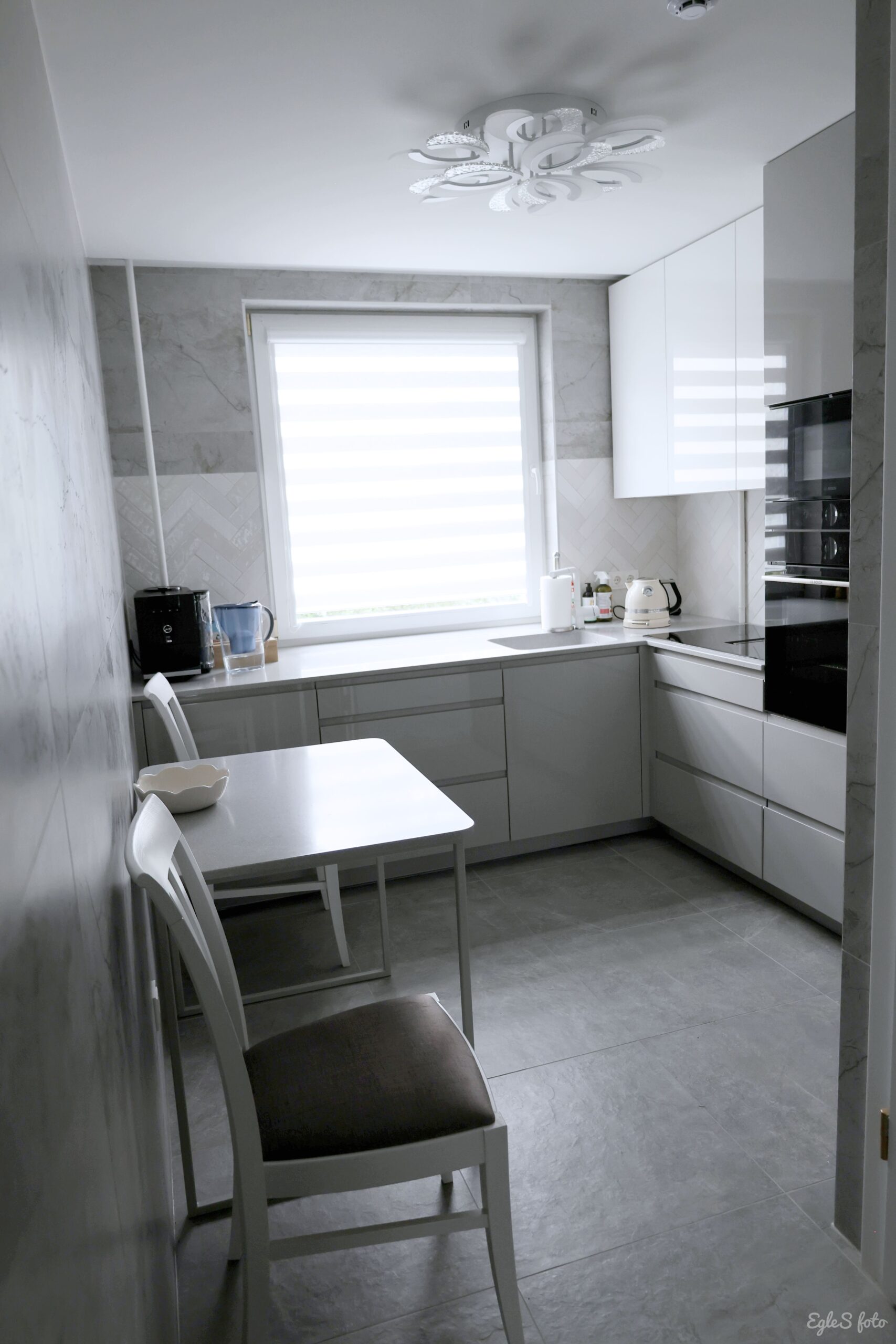 - Pilnai įrengta virtuvė su integruota buitine technika: indaplove, kavos aparatu, orkaite